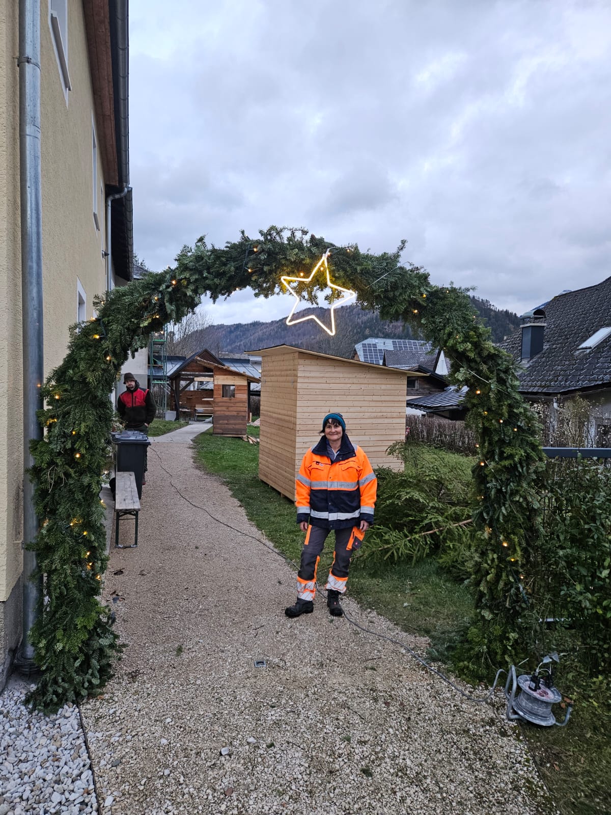 Die Hütten und der Eingangsbogen wurden aufgebaut und im Pfarrheim die letzten Feinarbeiten erledigt.