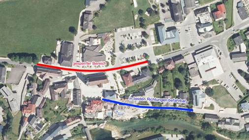· Der Parkplatz im Ortszentrum kann genutzt werden. Die Zufahrt ist jedoch nur von Gaming kommend möglich.