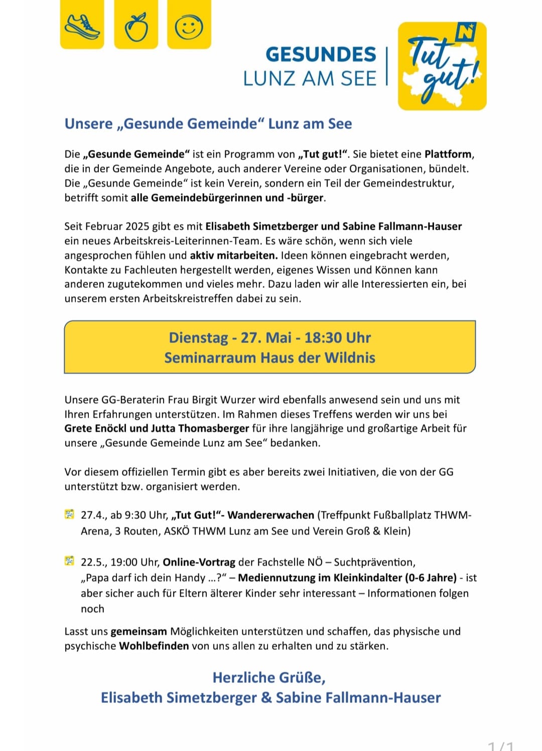 Elisabeth Simetzberger und Sabine Fallmann-Hauser fungieren seit Februar 2025 als neues Leiterinnen-Team des Arbeitskreises im Programm „Gesunde Gemeinde“, einer Plattform der Initiative „Tut gut!“ 🌿🤝