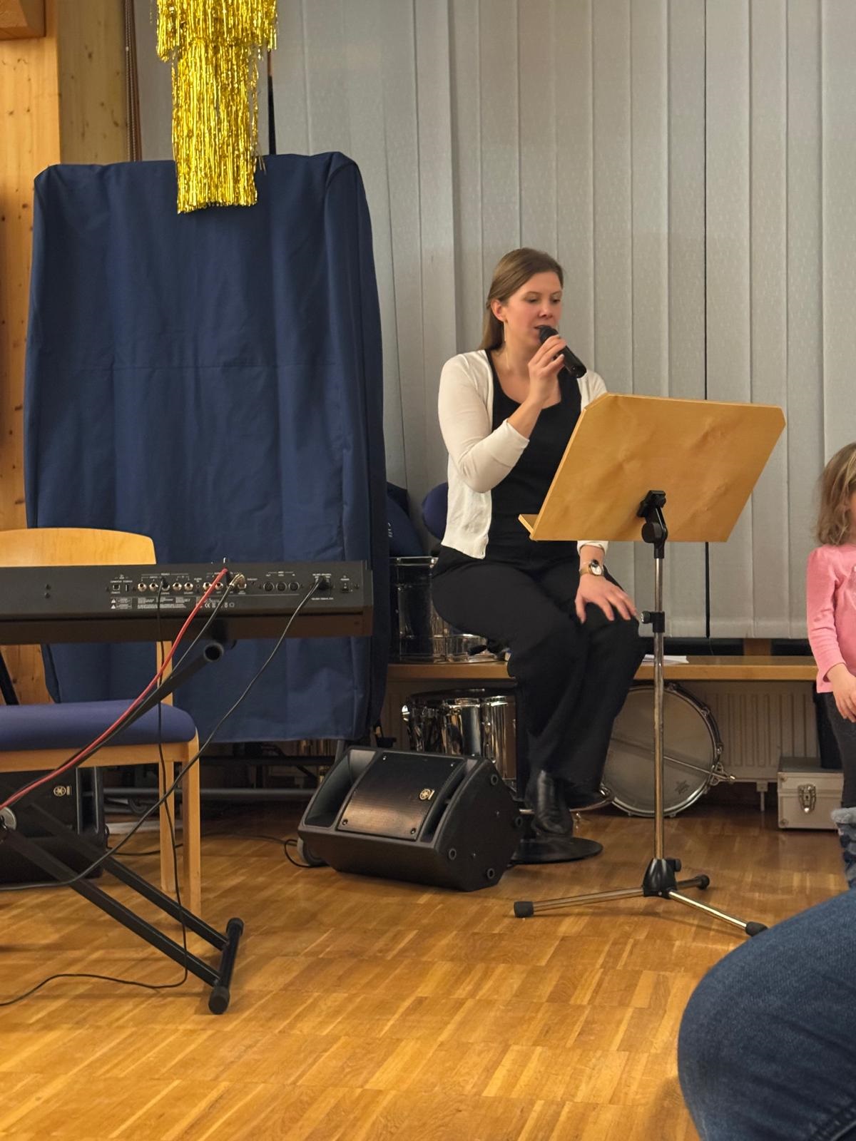 Vroni Schnabel führte charmant durch den musikalischen Abend und regte mit Gedichten zum Schmunzeln und Nachdenken an.😊📖