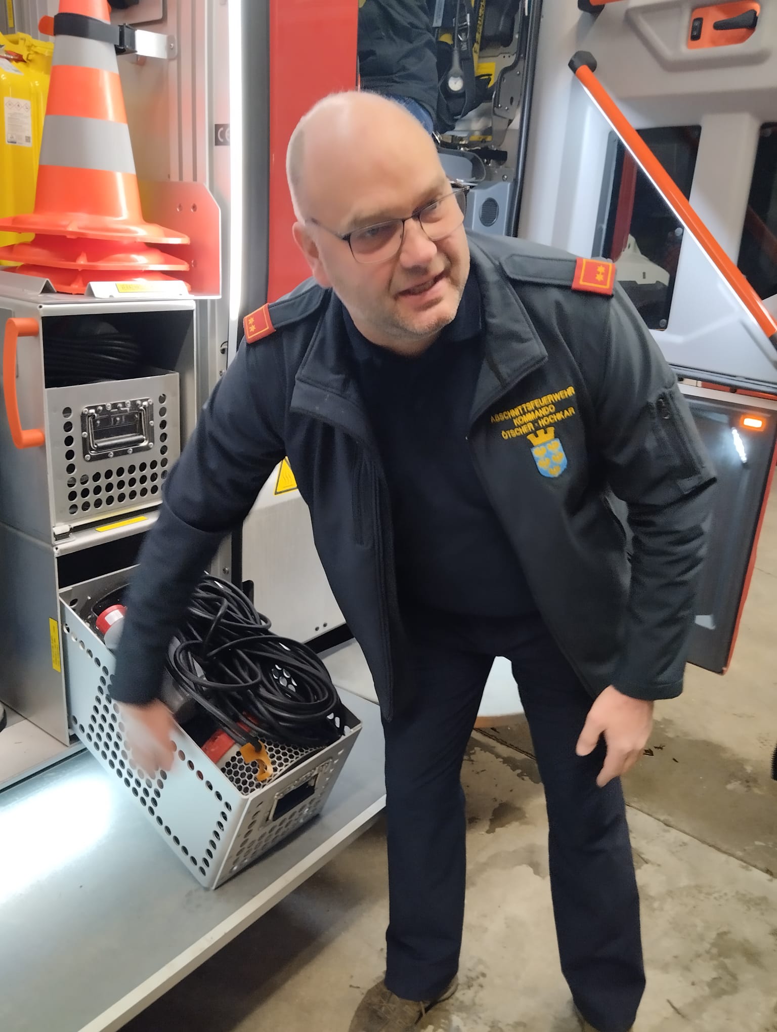 der Firma Rosenbauer in das Feuerwehrhaus ein.