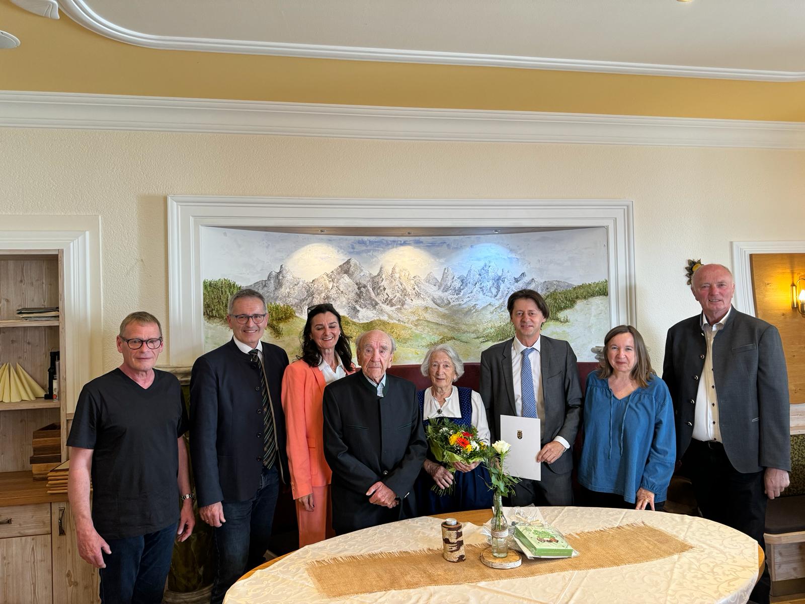 Vor 65,5 Jahren gaben sie einander das Eheversprechen. Eine besondere Ehre war es, auch Rudolf Pechhacker zu seinem 100. Geburtstag Glückwünsche zu überbringen. Unter den Gratulanten war auch Bezirkshauptmann Seper und überbrachte Glückwünsche unserer Landeshauptfrau.